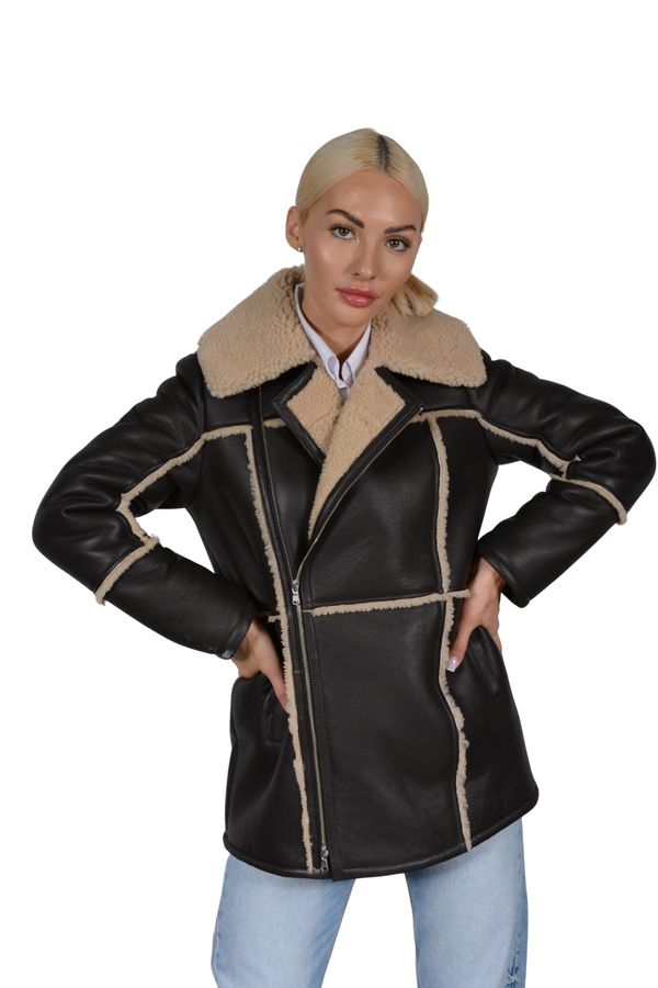 Дамски кожух от естествена агнешка кожа с косъм – идеален за студена зима.